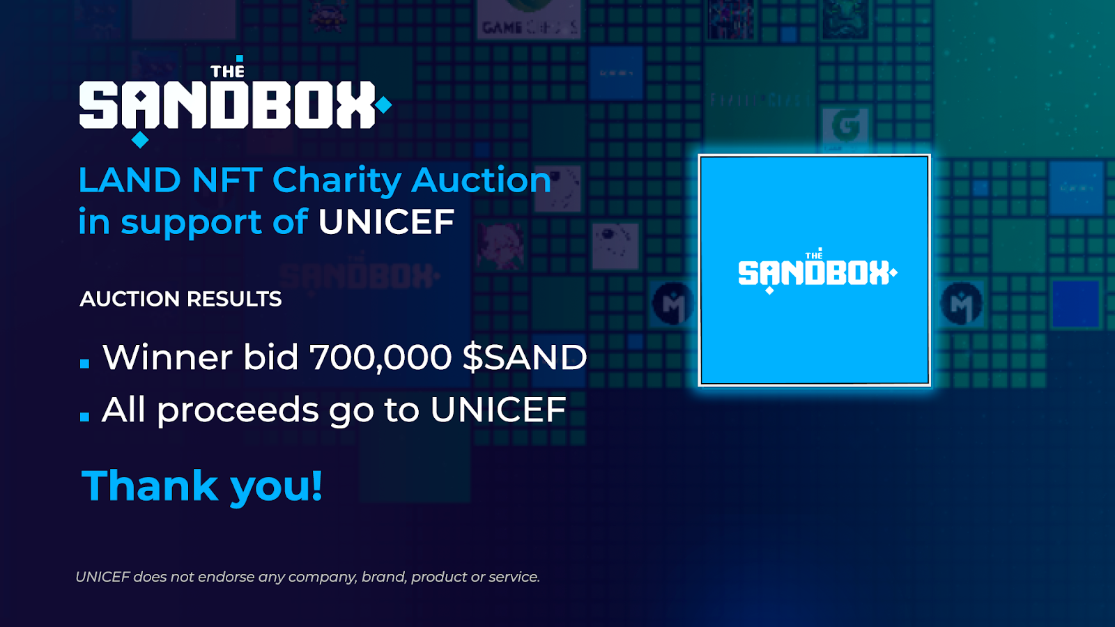 The Sandbox S Land Nft Charity Auction Raises 700 000 Sand In Support Of Unicef S Crypto Fund By The Sandbox The Sandbox Medium